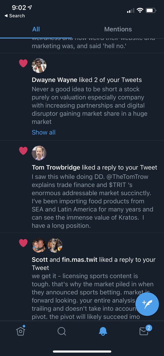 7) previous president was only there for 7 months which was listed as proof that $trit is a fraud. In response to me yday someone posted that they’re a trader & see enormous upside of Kraros & the former President liked thecomment! See pic of tom towbridge liking below