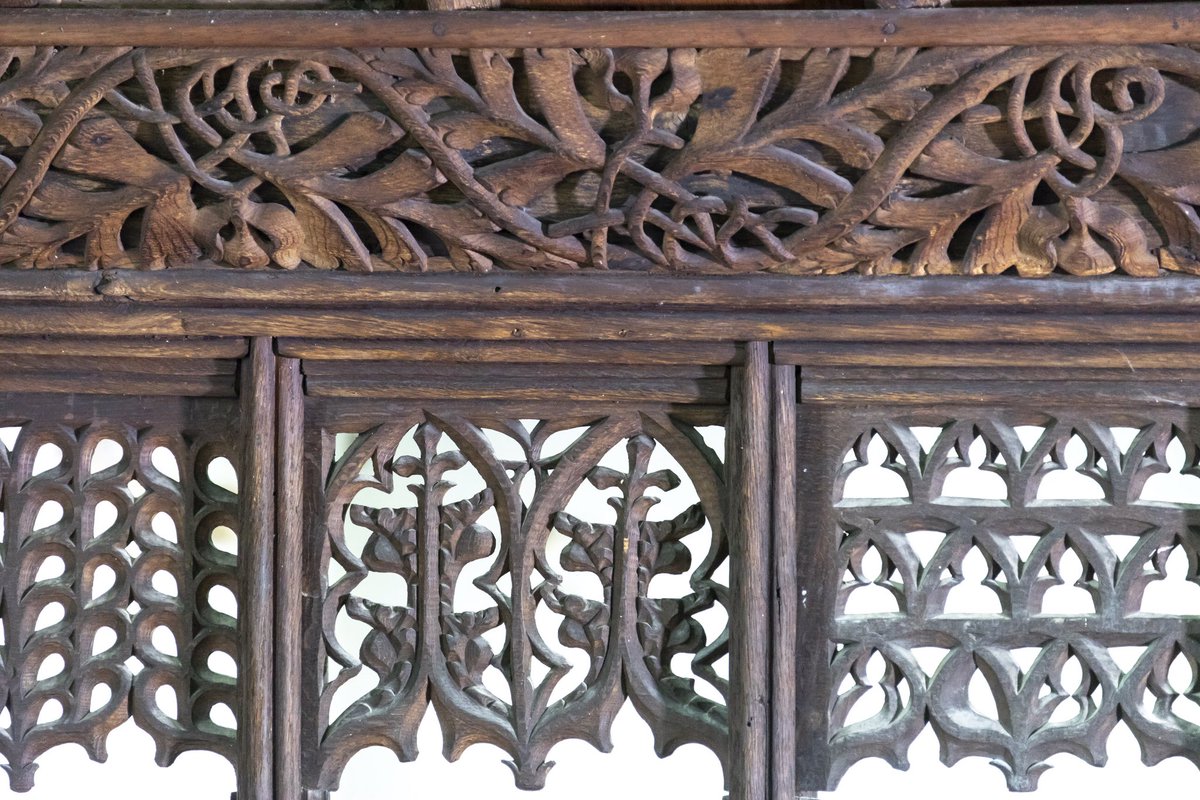 The colour you see today was added in 1863, when J. P. Seddon restored the church. Seddon’s team also replaced missing elements on the screen, but did not stain them. This honest repair makes it easy to see what dates to the 1400s and what came centuries later.
