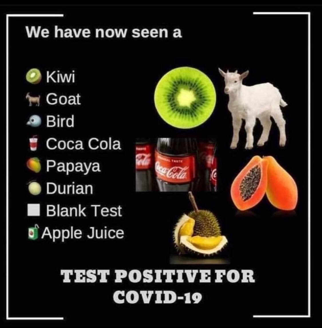 HEMOS VISTO A LOS SIGUIENTES INGREDIENTES TESTADO POSITIVO POR COVID: KIWI, CABRA, PAJÁRO, COCA COLA, PAPAYA, ZUMO DE MANZANA, ETC.😡😡😡