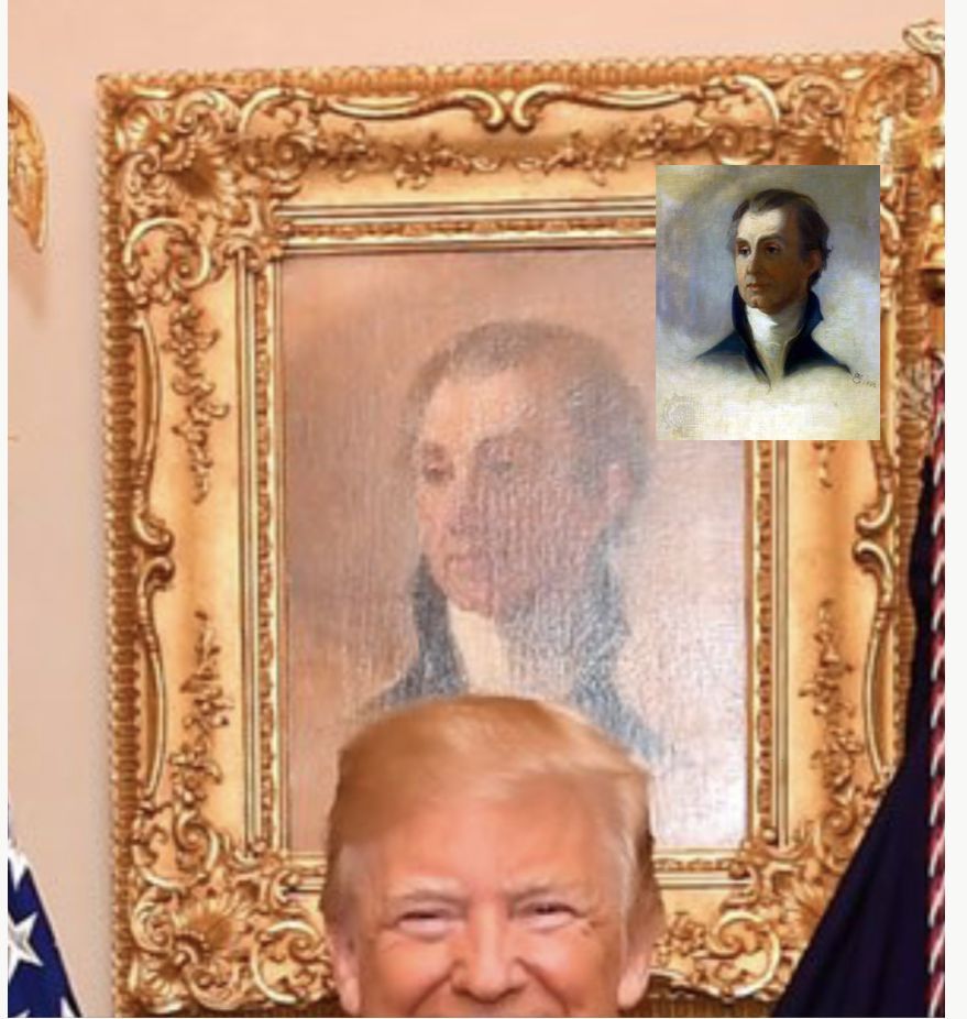 Como siempre, hay mensajes subliminales. Detrás de Trump aparece el retrato del Presidente Monroe, que inició una era de concordia, al unificar el país, eliminando los partidos políticos. ¿Os suena de algo?
