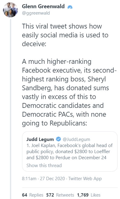 4. Facebook must explain WHY it has decided not to enforce its rules in the critical days before the election and what role Joel Kaplan -- who maxed out to Loeffler last week -- has played in this decision.