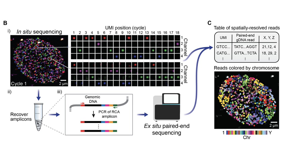 The trick is that instead of directly in situ sequencing the genomic DNA, we read out unique spatial barcodes.