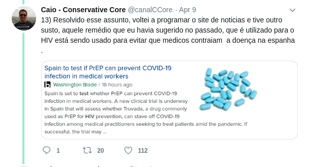 é tipo nisso que a empresa farmacêutica vai chegar com o COVID, um comprimido que vc toma todo dia a vida toda para n se infectar.