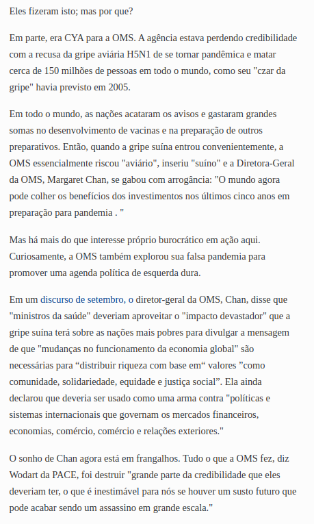 Para mim a OMS não passa de um órgão feito para apaziguar a guerra entre globalistas no setor da BigPharma.