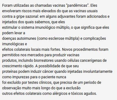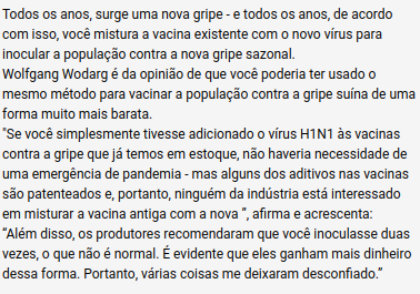 Entre os pontos semelhantes com o que estamos passando hoje, o Dr. Wolfgang Wodarg, medical expert specialising in epidemiology disse 2 coisa sobre vacinas