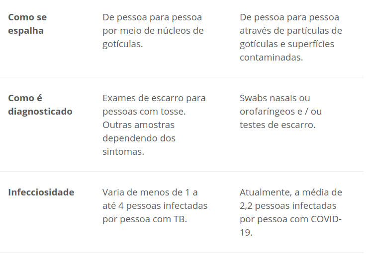 Quero que alguém me explique qual a diferença entre tuberculose (coluna da esquerda) e covid(coluna da direita)