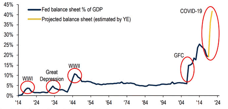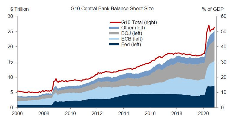 @BankofAmerica estimated that the World world generated a 22 trillion USD stimulus (combined fiscal and monetary) in 2020, nearly a quarter of global GDP. Fed's balance sheet reached 40% of US GDP, its highest level since Fed inception in December 1913