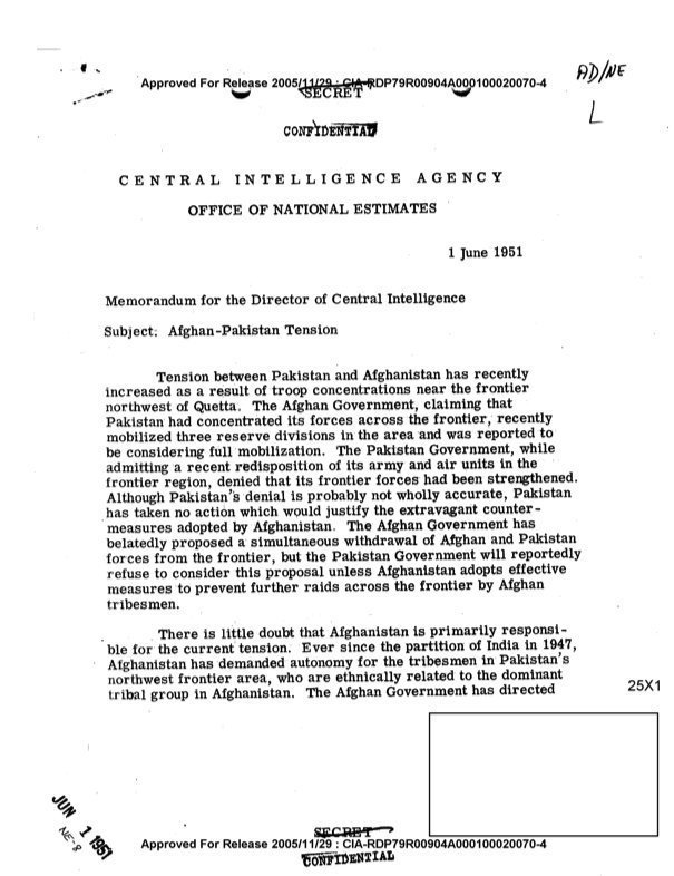 -After Pakistan's independence, Afg started full scale proxies against Pak to start rebellion and later annex the land while Pakistan still had active frontier with Eastern giant neighbor. (3/4p CIA declassified doc)