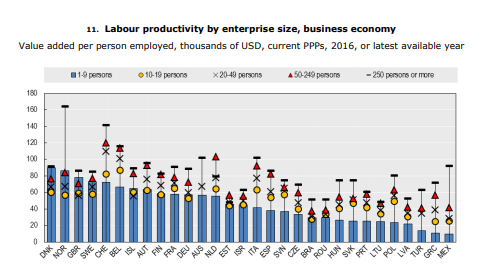 34)No ocurre lo mismo en cuanto a la productividad de las empresas de +50 empleados en 🇪🇸, ya que sus niveles son tan buenos como los de las economías más solventes, pero como ya expliqué en este hilo, el intervencionismo estatal no permite crecer