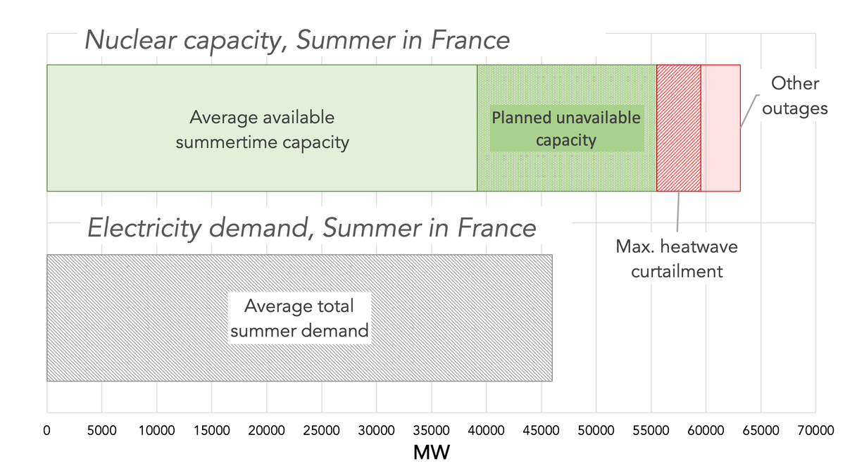 The lost capacity due to curtailment during heat waves, (much more important than annual output reduction!), is relatively modest. In France (which is by far "hardest hit"), it is hard to discern the impact of heat-wave curtailment in actual production & availability data.