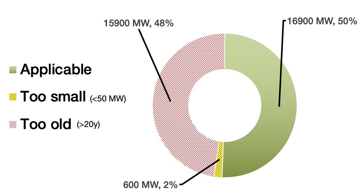[7/x] Determining the potential of the idea requires the detailed characterization of the existing coal power plant fleet, including effective age, sites, steam conditions etc. We made a detailed survey of Poland for the case study, applying constraints for age and size.