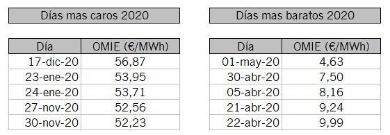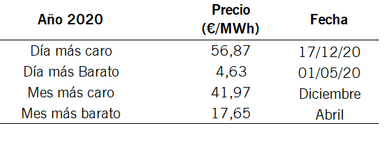Esto ya se ha dicho pero 2020 ha sido el año más barato de la historia en OMIE y 2 meses entre los más baratos de la historia (El año 2021 cerro el 31/12/20 a 51 €/MWh en el mercado de futuros) #ingestats