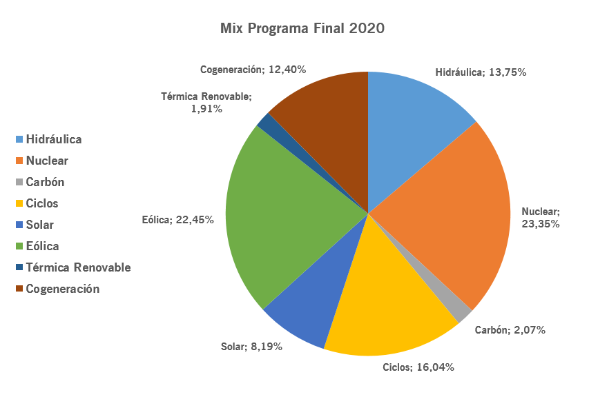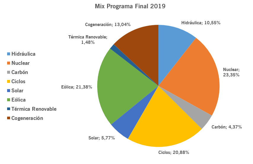 Mix de generación del programa casi final (P48) del mercado. Añadimos también 2019 para comparar. Incluimos datos diarios de energía solar y eólica los dos últimos año #ingestats