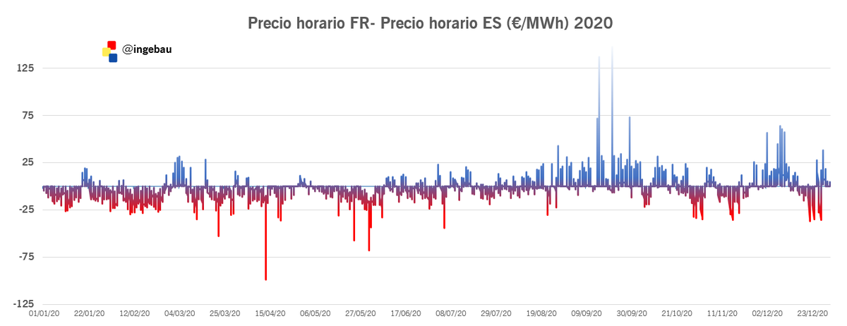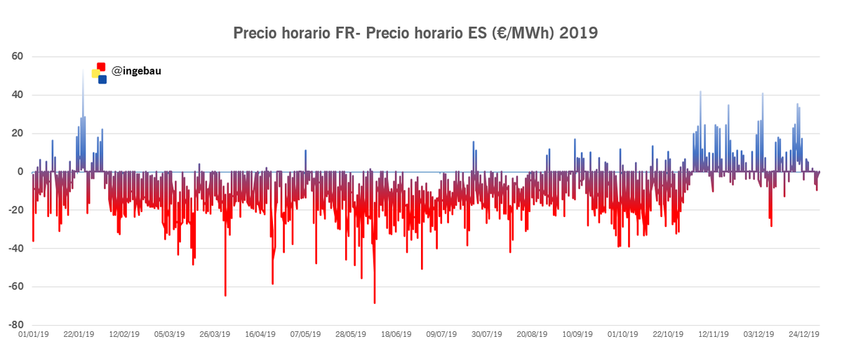 Y ahora gráficamente la diferencia de precio entre Francia y España los dos últimos años, mucho más acentuada en 2019 que en 2020 #ingestats