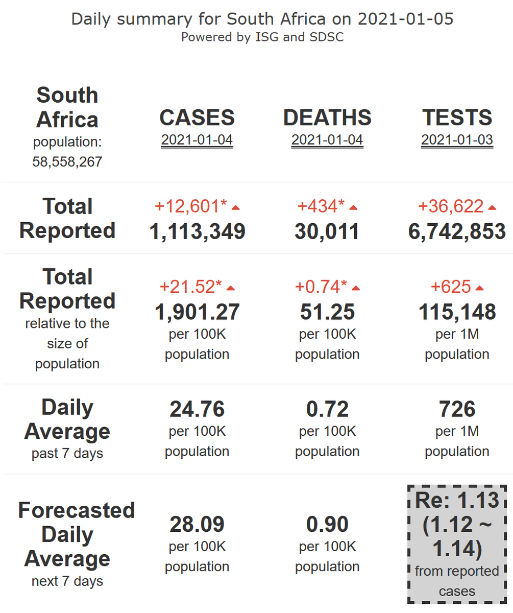 13/21. South Africa is experiencing a rise in its #COVID19 epidemic activity (R-eff=1.13), at high levels, with increasing very high levels of mortality, for 7 more days.