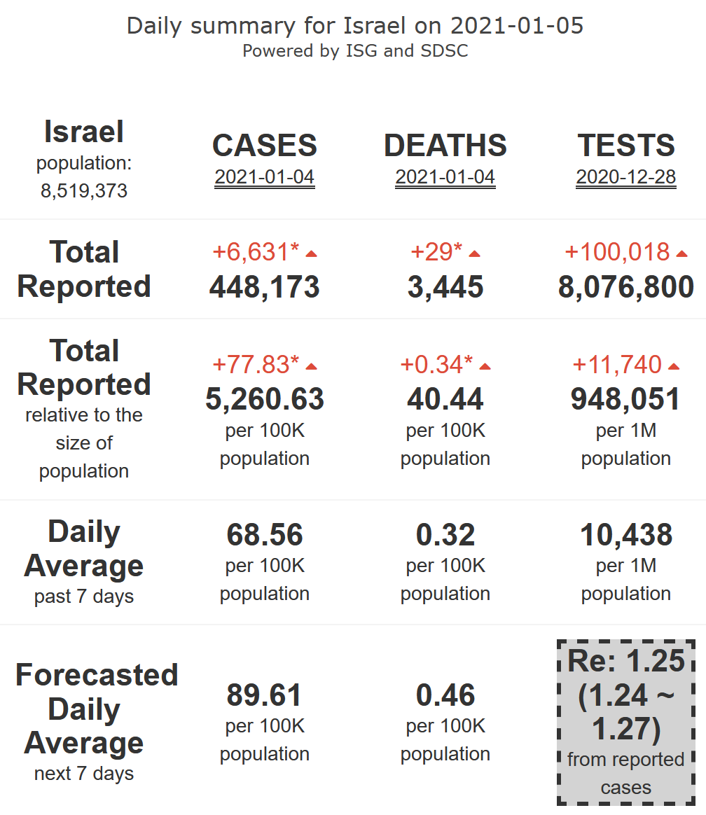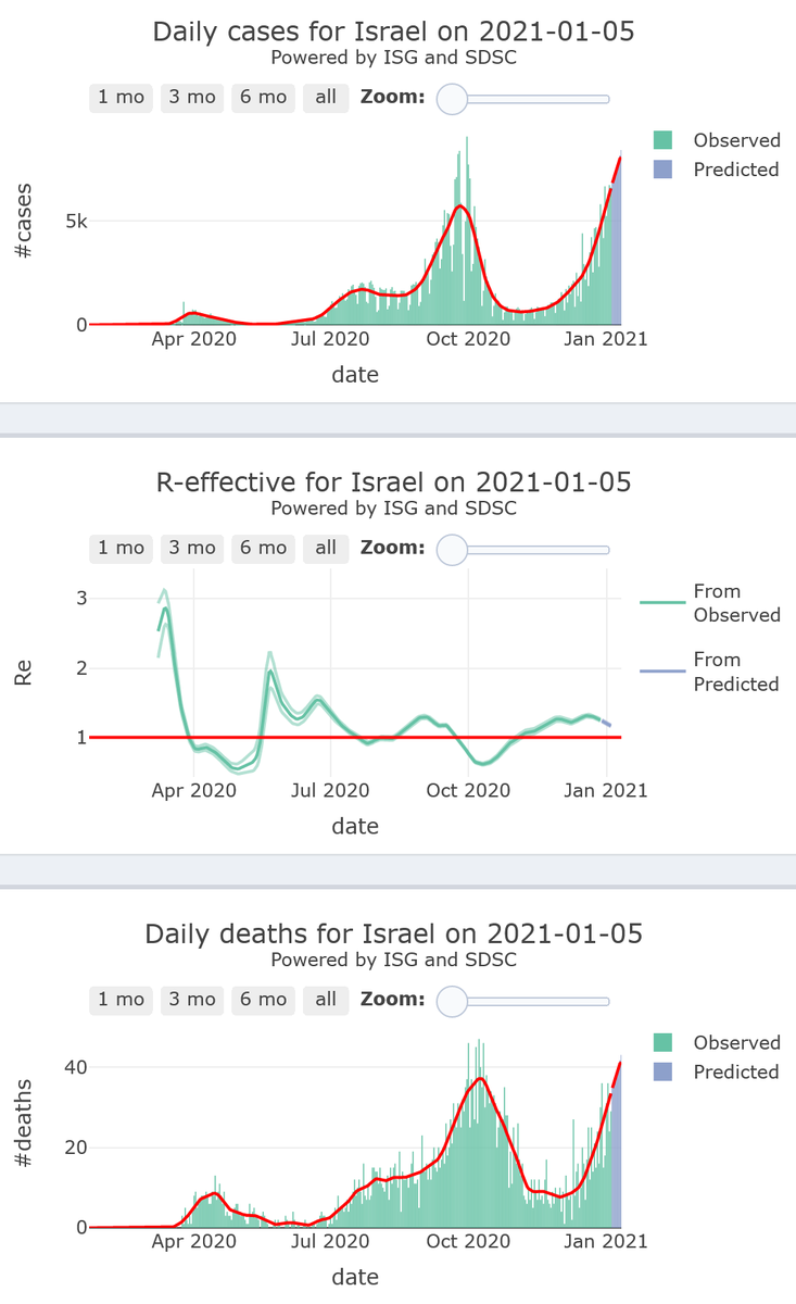 14/21. Israel will continue to experience a surge in its #COVID19 epidemic activity (R-eff=1.25) at high levels, with increasing high levels of mortality, for 7 more days.
