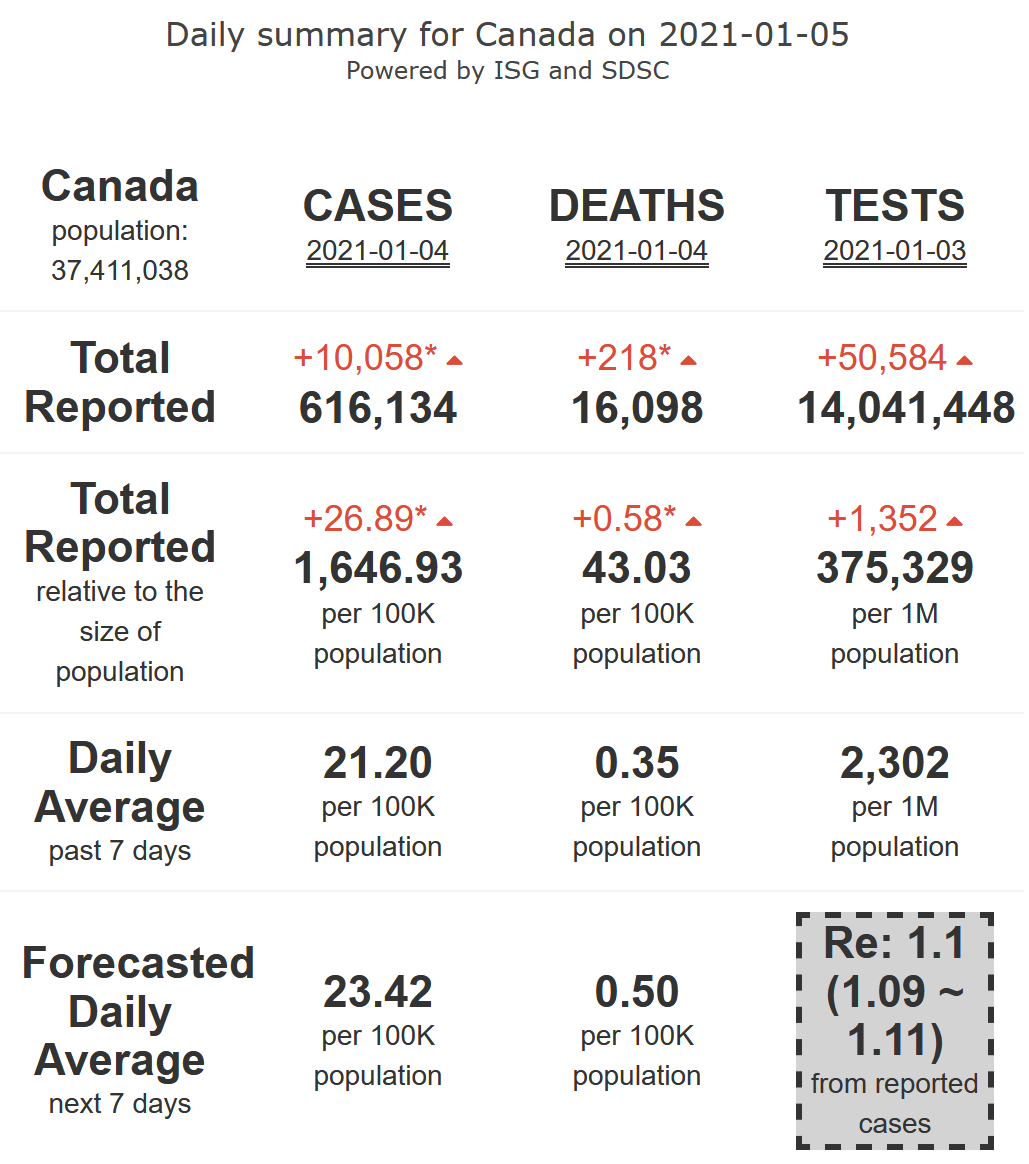 18/21. Canada will see a rise in its #COVID19 epidemic activity (R-eff=1.10), at high levels, with increasing high to very high (by the weekend) mortality, for 7 more d.
