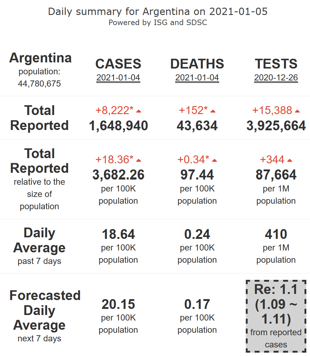 20/21. Argentina is experiencing a rise again in its #COVID19 epidemic activity (R-eff=1.10), at medium to high (by the weekend) levels, with medium levels of mortality, for 7 more days.