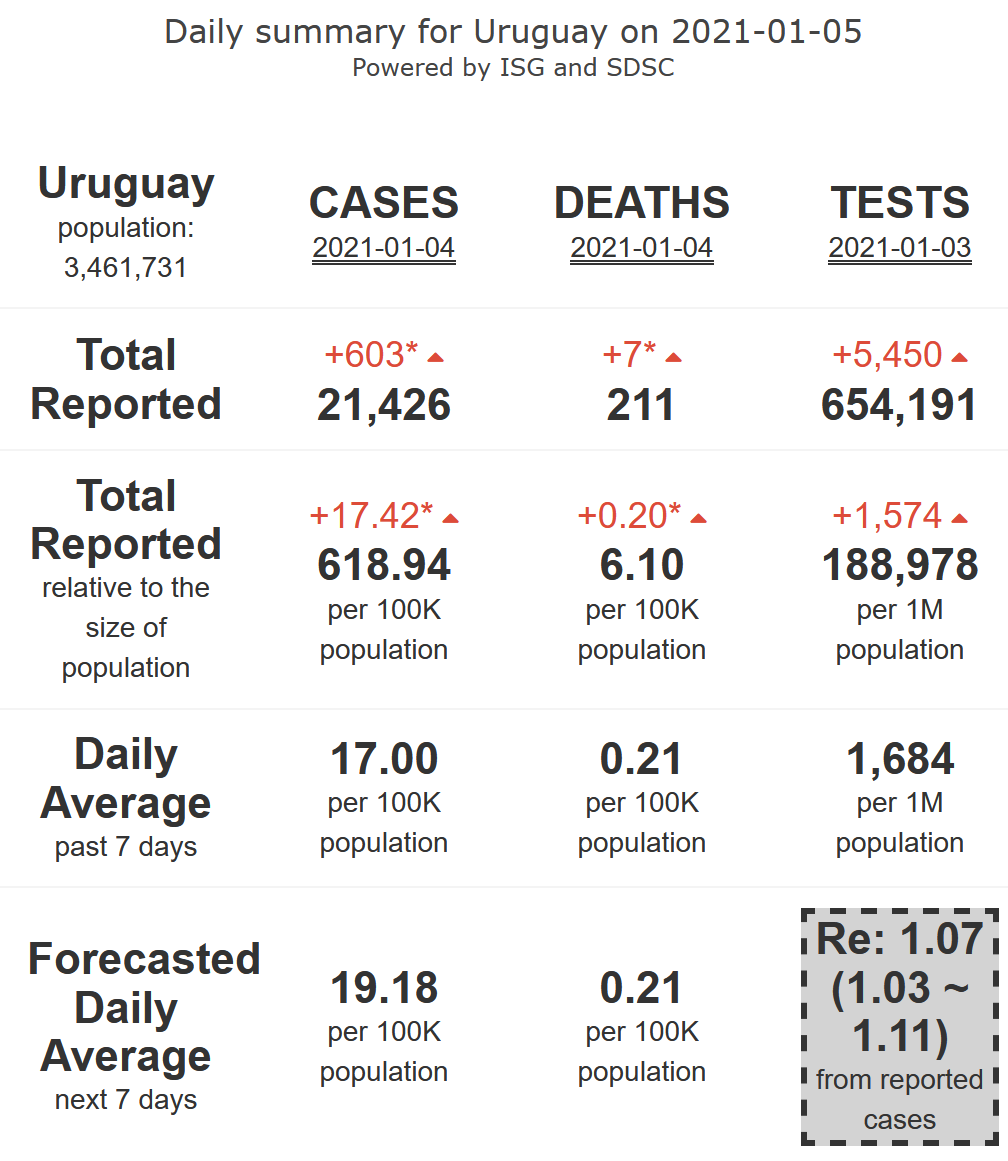 21/21. Uruguay is experiencing an increase in its #COVID19 epidemic activity (R-eff=1.07), at medium levels, with high levels of mortality, for 7 more days.