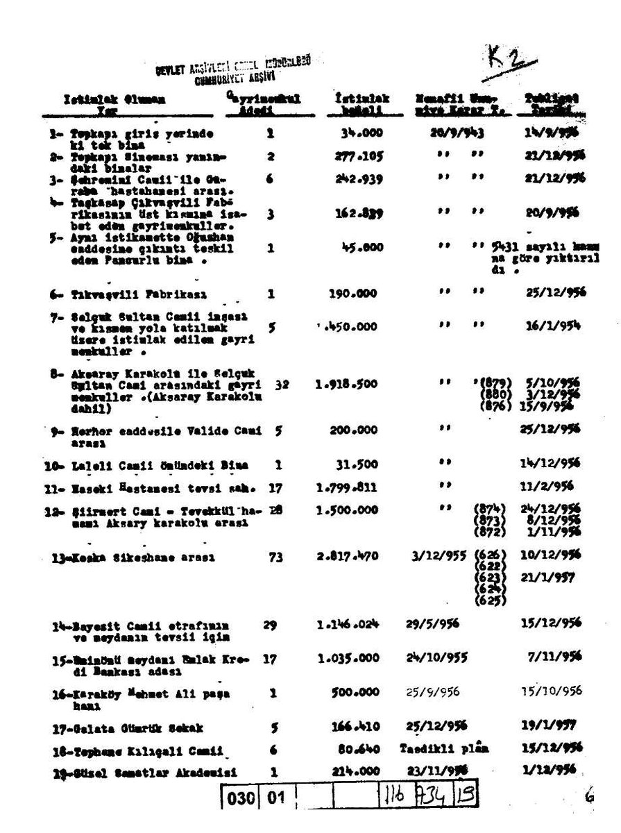 1- Menderes 1956'da "İstanbul'u yeniden fethediyoruz" sloganıyla imar çalışmalarını başlattı. Özellikle trafiği rahatlatmak için başlatılan bu faaliyetin sonunda tarihi eser katliamı yaşandı.