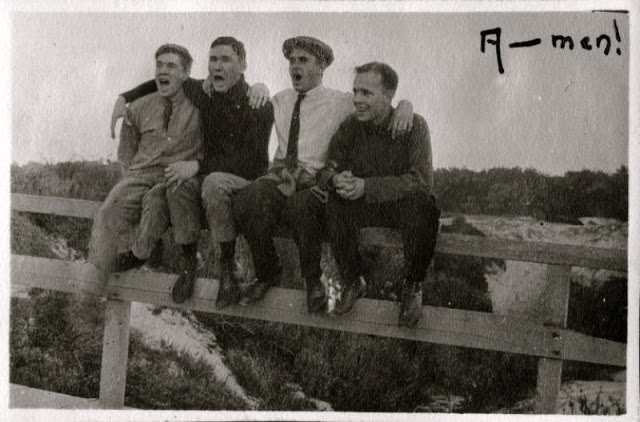 Male camraderie was taken seriously. Guys weren't worried about looking "gay" or any of that lame bullshit you hear today. They didn't need to worry: they were spontaneous, sincere, and not uptight. Guys weren't uptight about touching.