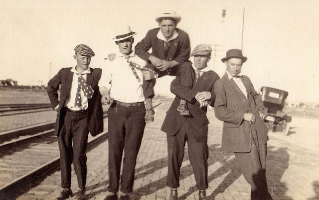 1. All right, gang. Before I knock off, one final thread on 1920s threads, just so you can see what great taste & style your great-granddaddies had. And how far we've sunk since then.