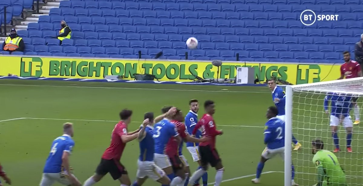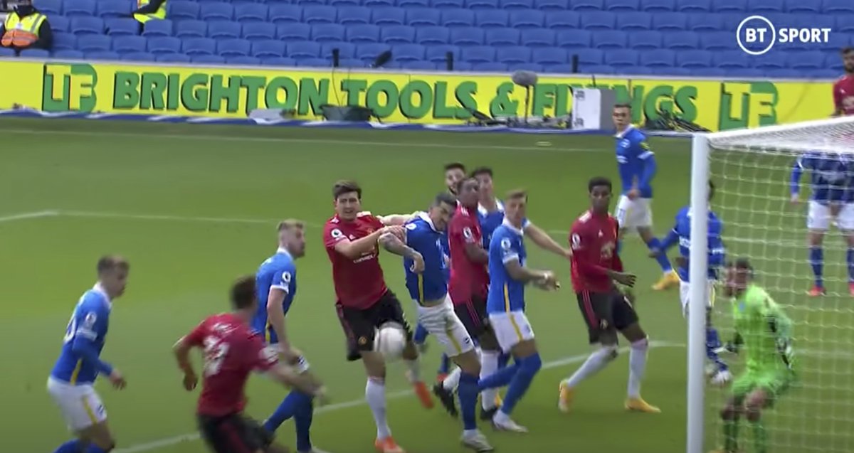 Brighton vs Manchester United (2-3) Maguire was holding onto the Brighton player before scoring. VAR didn't even glance at his foul.