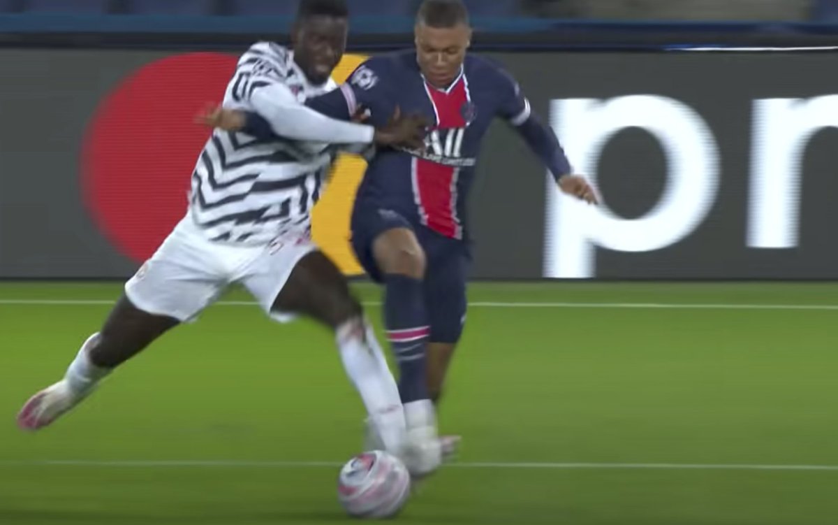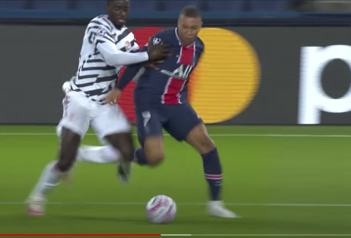 another clear penalty not given against United with Mbappe as clear as daylight pushed with two hands and legs kicked before getting the ball.