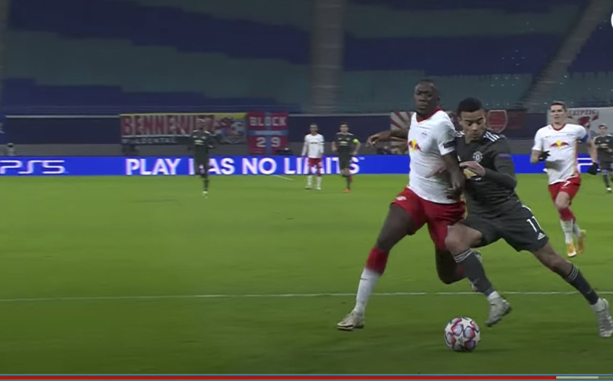 Leipzig vs United. Greenwood and the defender come together in the box, both just clash into each other and the ref and VAR deem it to be a penalty. Watching the replays it becomes more obvious that Greenwood leans into the defender.