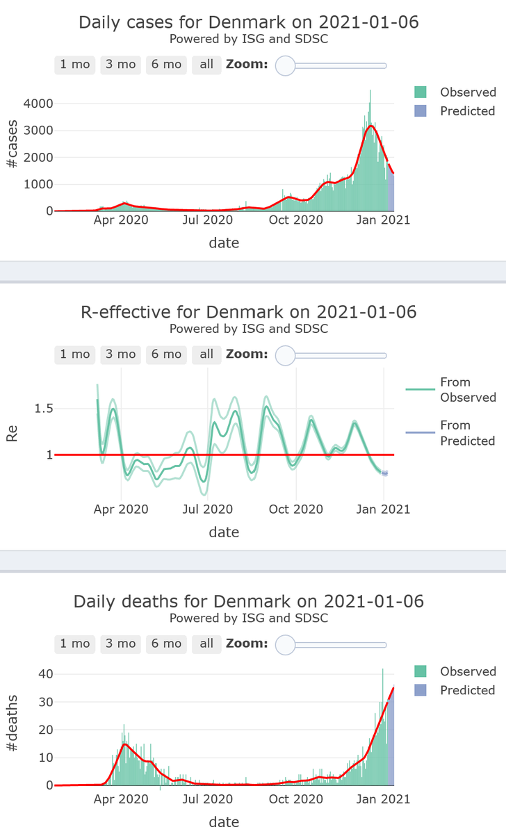 4/21. Denmark is landing towards its #COVID19 safety zone (R-eff=0.81), at high levels of activity, with still increasing very high levels of mortality, for 7 more days.