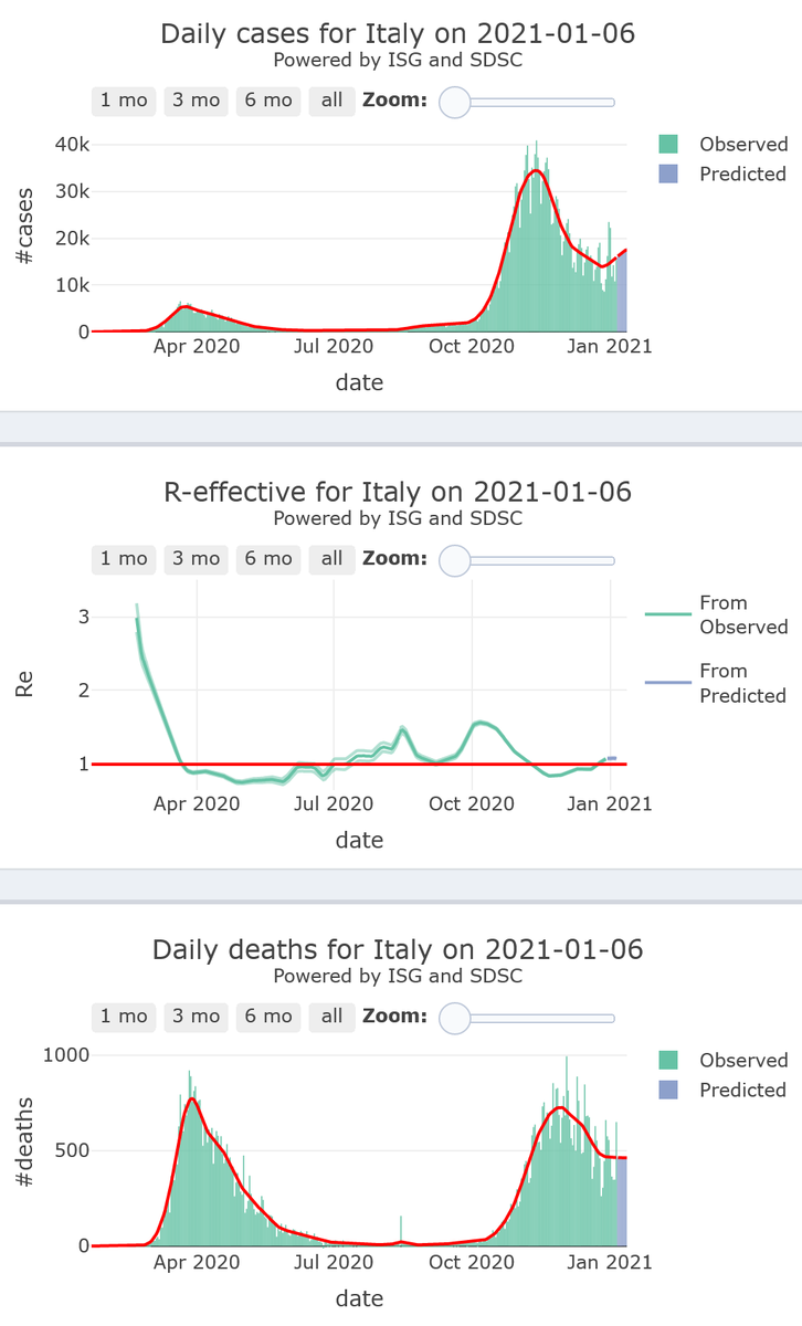 8/21. Italy seems close to rise again in its #COVID19 epidemic activity (R-eff=1.07), at high levels of activity, plateauing at very high levels of mortality, for 7 more days.