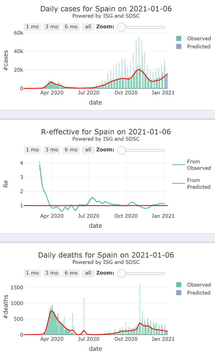 9/21. Spain is experiencing a rise again in its #COVID19 epidemic activity (R-eff=1.15), at high levels, with decreasing high levels of mortality, for 7 more days.