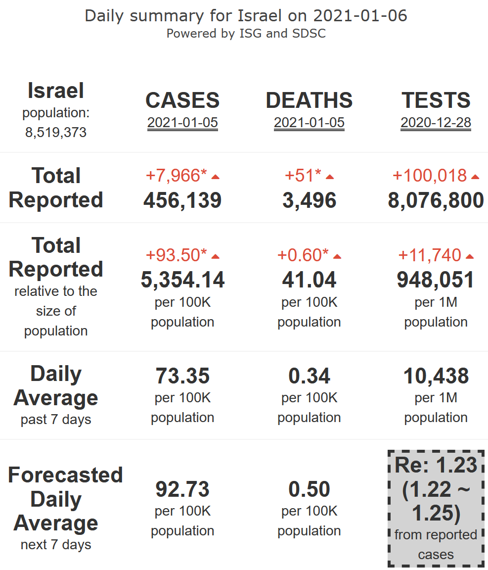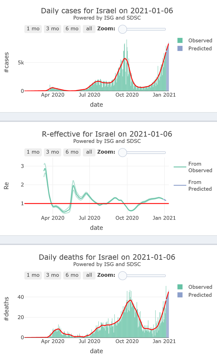 14/21. Israel will continue to experience a surge in its #COVID19 epidemic activity (R-eff=1.23), at high levels, with high to very high (by the weekend) levels of mortality, for 7 more days.