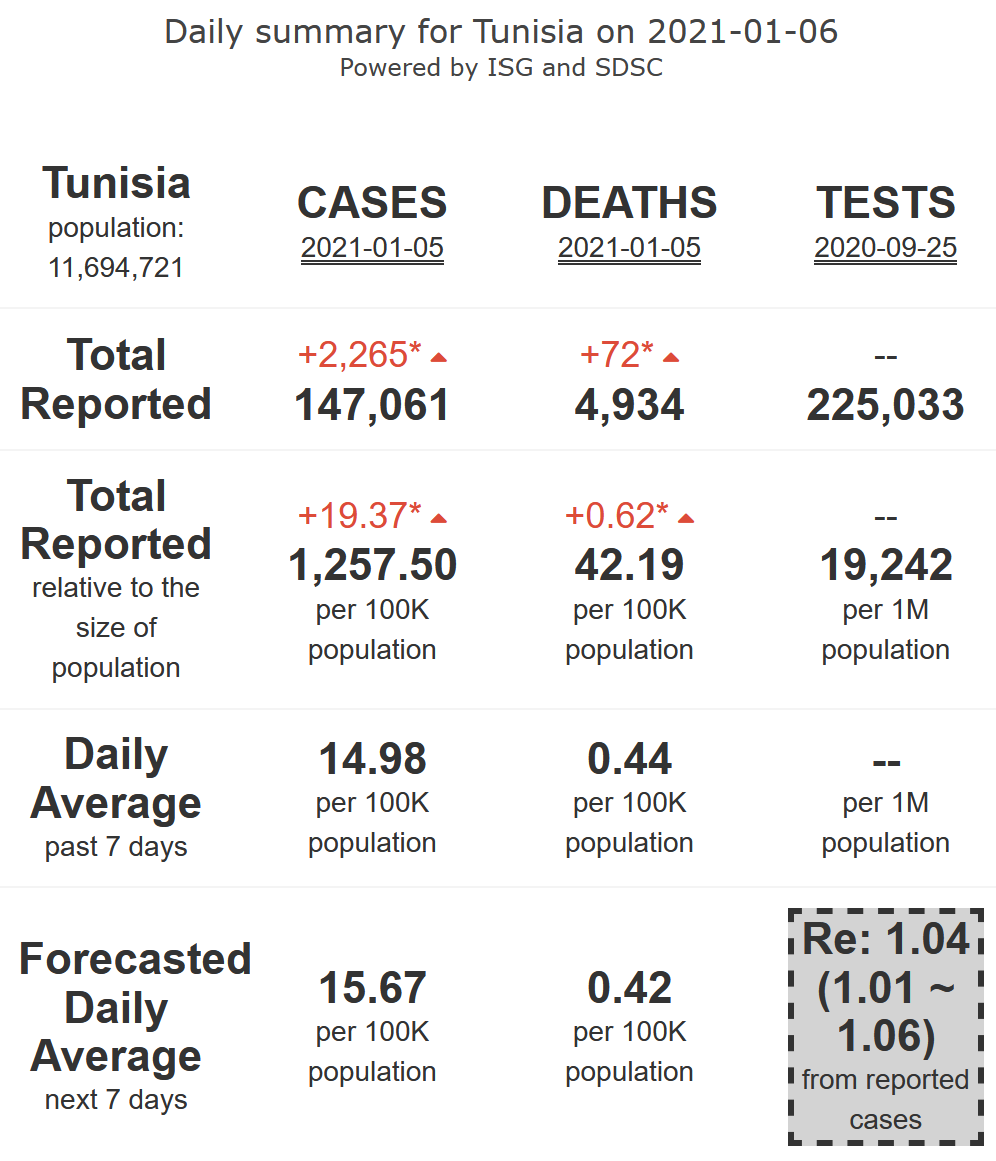 12/21. Tunisia does not seem to succeed in taking over control of its #COVID19 epidemic activity (R-eff=1.04), at medium levels, plateauing at high levels of mortality, for 7 more days.