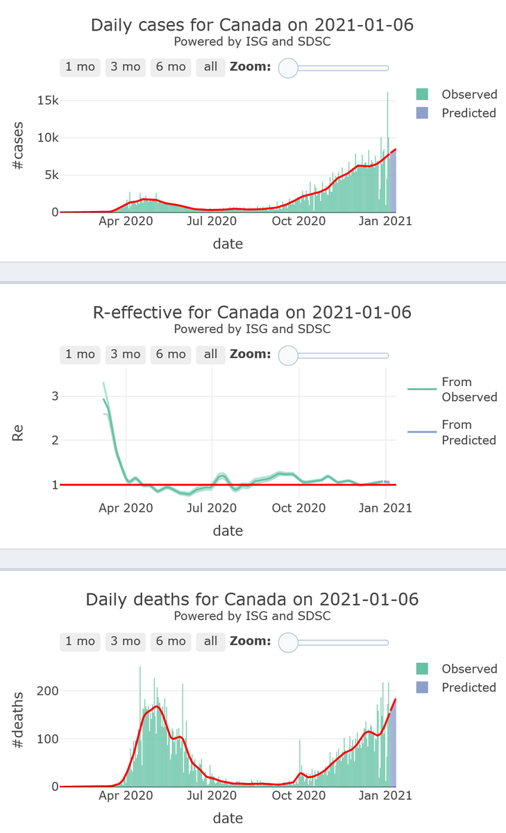 18/21. Canada will see an increase in its #COVID19 epidemic activity (R-eff=1.07), at high levels, with increasing high level of mortality, for 7 more days.