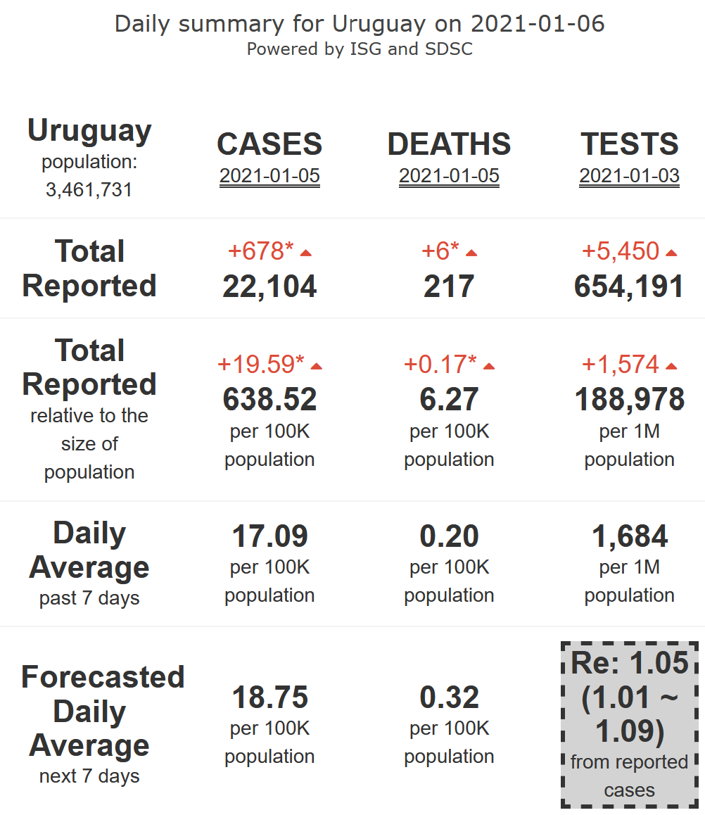21/21. Uruguay is experiencing an increase in its #COVID19 epidemic activity (R-eff=1.05), at medium levels, with increasing high levels of mortality, for 7 more days.