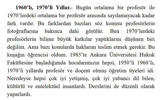 "Ben 1970'lerdeki profesörlerin bilime büyük katkılar yaptıklarını düşünen biri değilim. Ama bazı konularda haklarını teslim etmek gerekir":