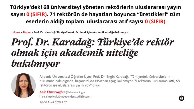 - Türkiye'deki 68 üniversiteyi yöneten rektörlerin uluslararası yayın sayısı 0 (SIFIR).