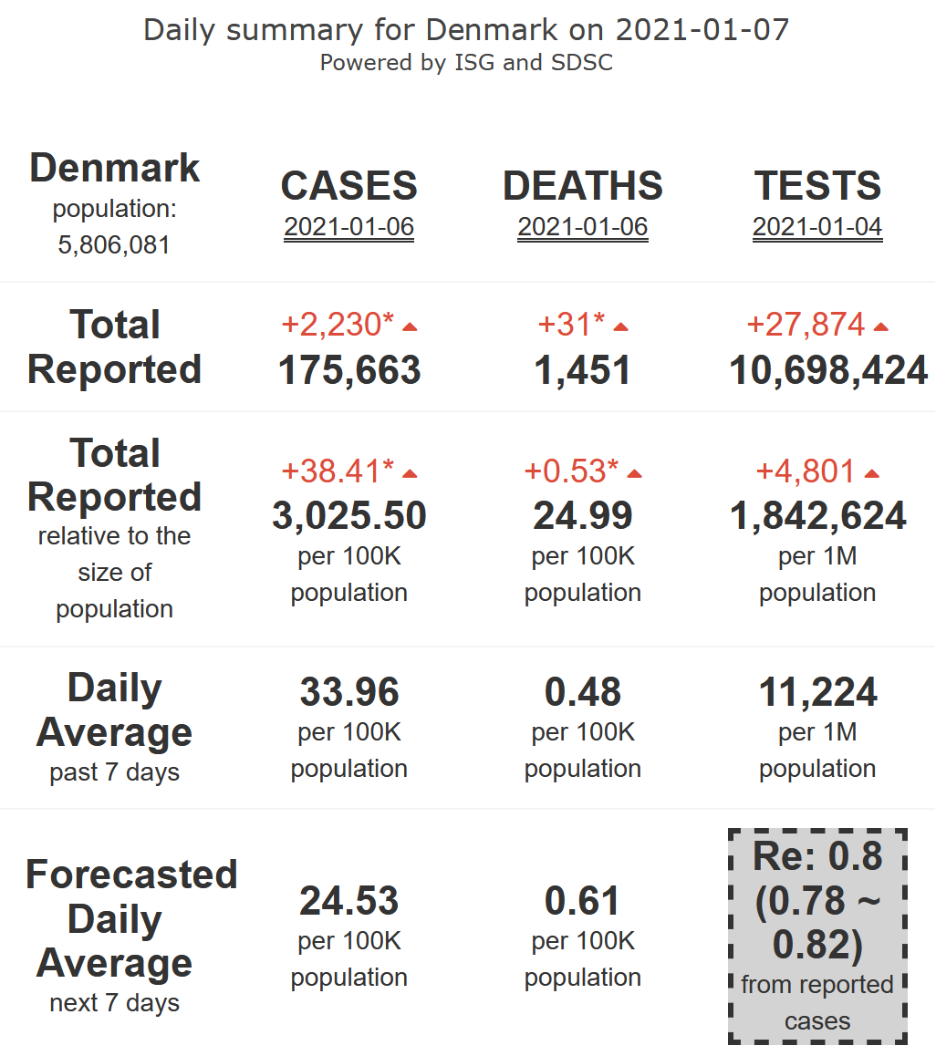 4/21. Denmark is landing towards its #COVID19 safety zone (R-eff=0.80), at high levels of activity, with still increasing very high levels of mortality, for 7 more days.