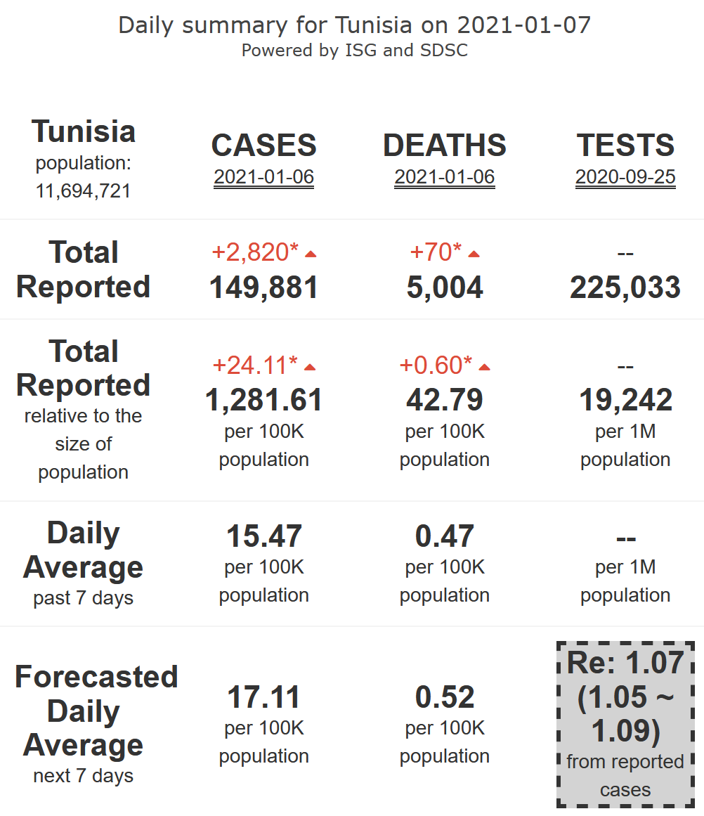 12/21. Tunisia is experiencing an increase again in its #COVID19 epidemic activity (R-eff=1.07), at medium levels, with very high levels of mortality, for 7 more days.