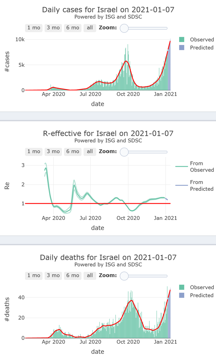 14/21. Israel will continue to experience a surge in its #COVID19 epidemic activity (R-eff=1.29), at high to very high (by the weekend) levels, with high to very high (by the weekend) levels of mortality, for 7 more days.