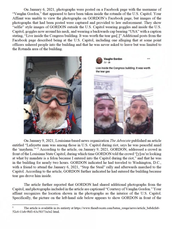 Vaughn Gordon, Louisiana, who has a degree in applied sciences, he said in court, is released with all the standard requirements (stay away from DC, no illegal firearms or crime committing, check in weekly w the court). He was arrested after posting selfies and giving interviews: