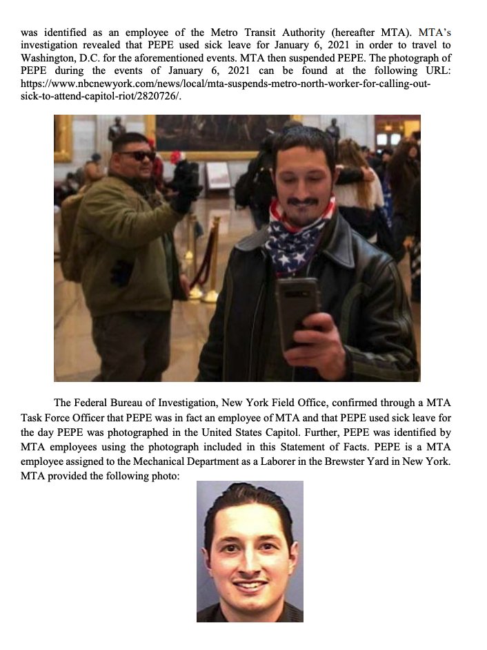 William Pepe, a Metro North worker in NY, was arrested after the FBI found mirror pics he took in the capitol during the insurrection. He was suspended by the MTA for calling out sick to go storm the Capitol. SDNY has put him on GPS monitoring. nbcnewyork.com/news/local/mta…