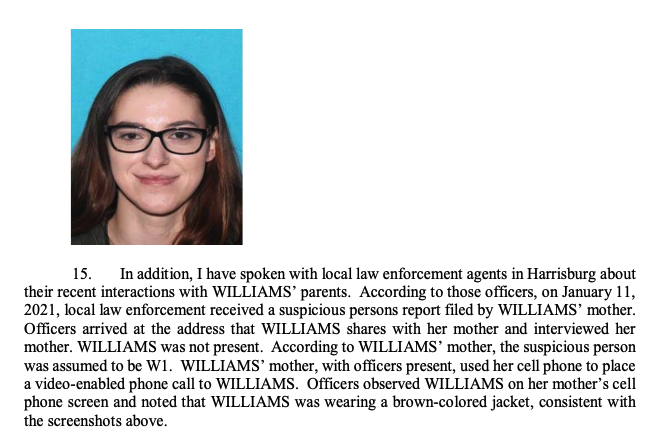 The government said they are concerned that Williams has used the computer and the internet to "destroy evidence and encourage other people to do the same." They asked that PA pretrial services search her home, car, and workplace for any internet connected devices.