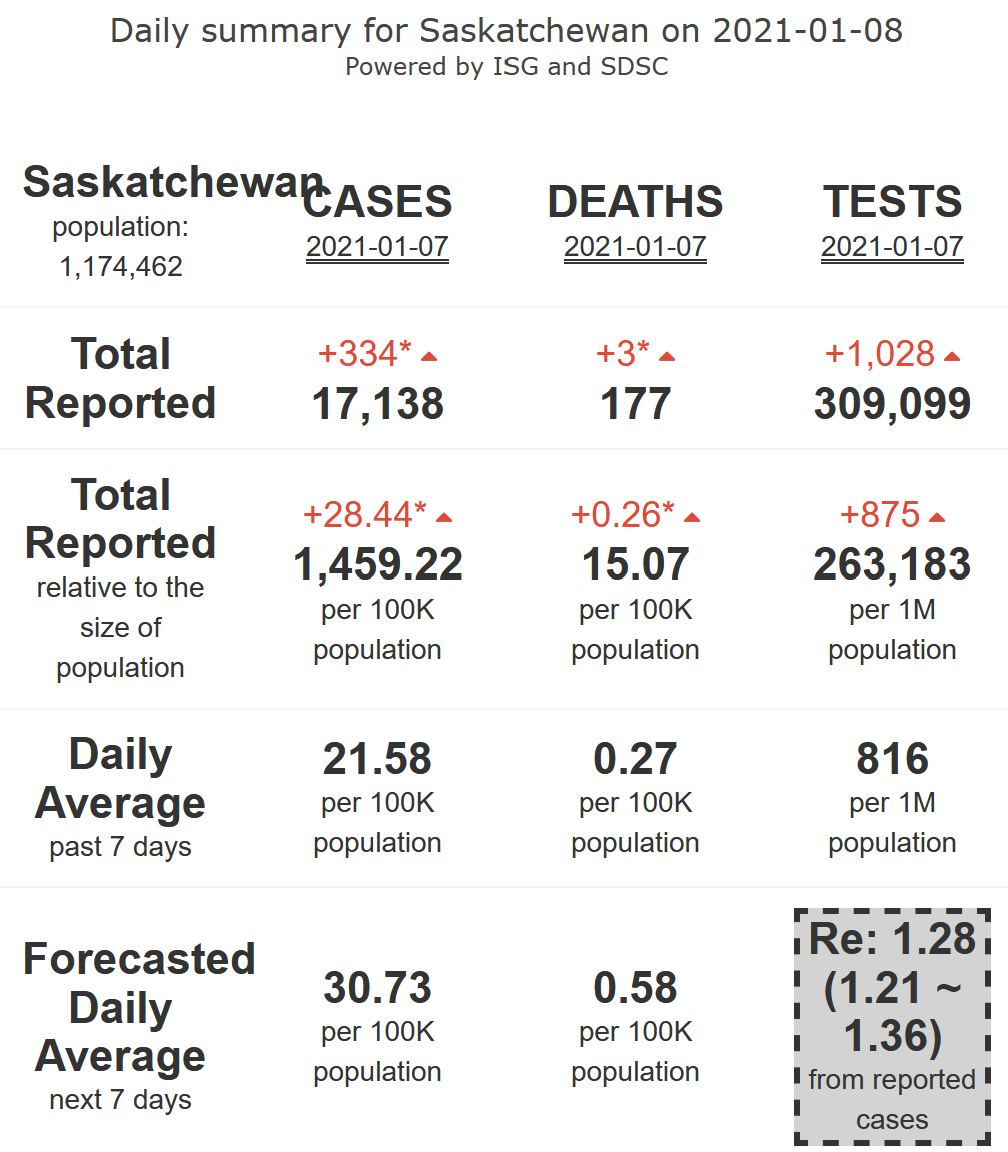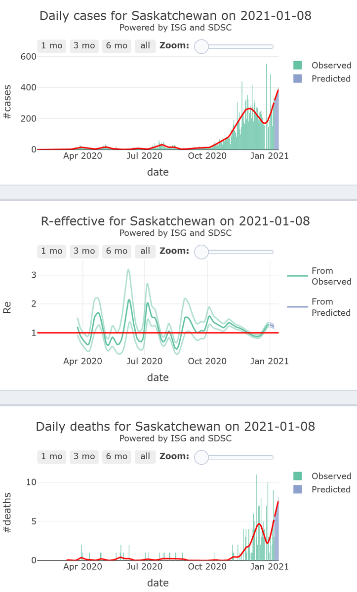 4/5 - Saskatchewan will experience a surge again in its #COVID19 epidemic activity (R-eff=1.28) at high levels, with increasing very high levels of mortality, for 7 more days.