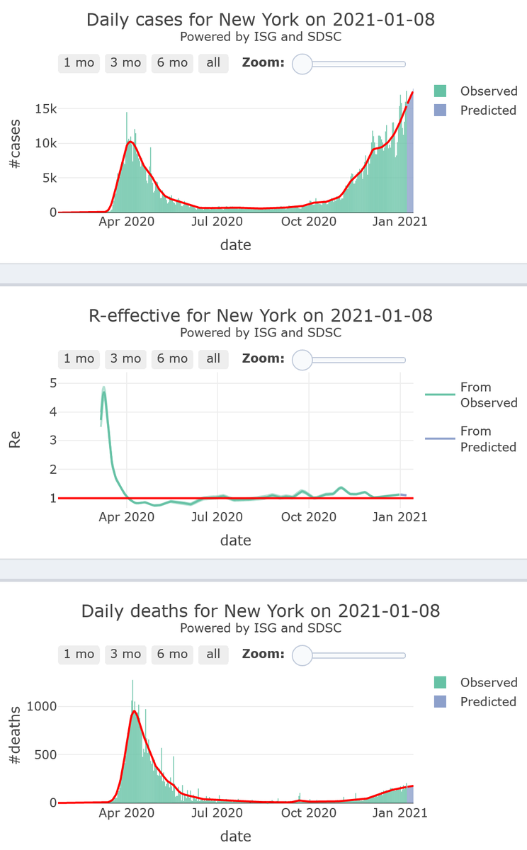 4/10 - New York will experience a rise in its #COVID19 epidemic activity (R-eff=1.13), at high levels, with very high levels of mortality, for 7 more days.