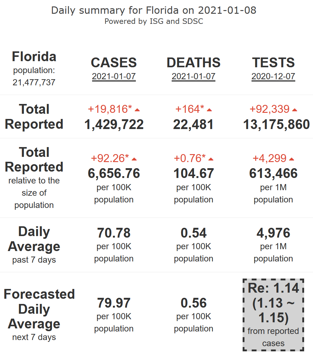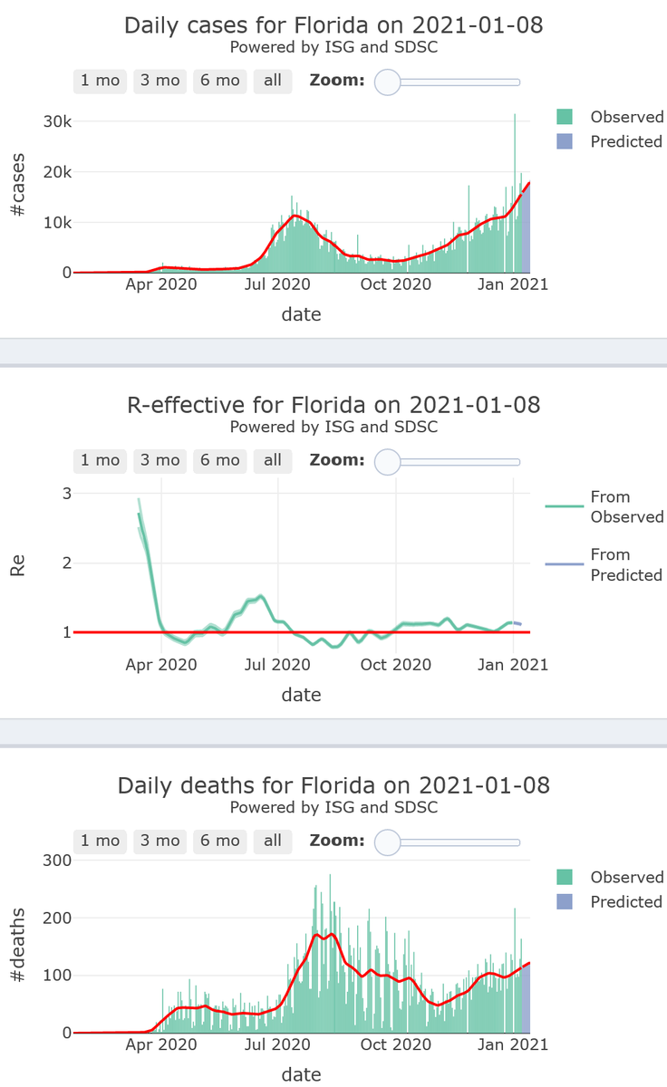 6/10 - Florida will be experiencing a rise in its #COVID19 epidemic activity (R-eff=1.14), at high levels, with increasing very high levels of mortality, for 7 more days.