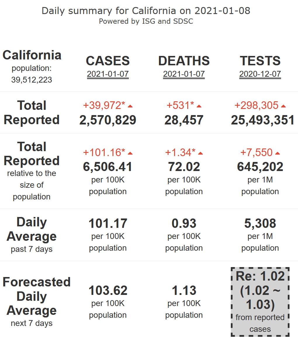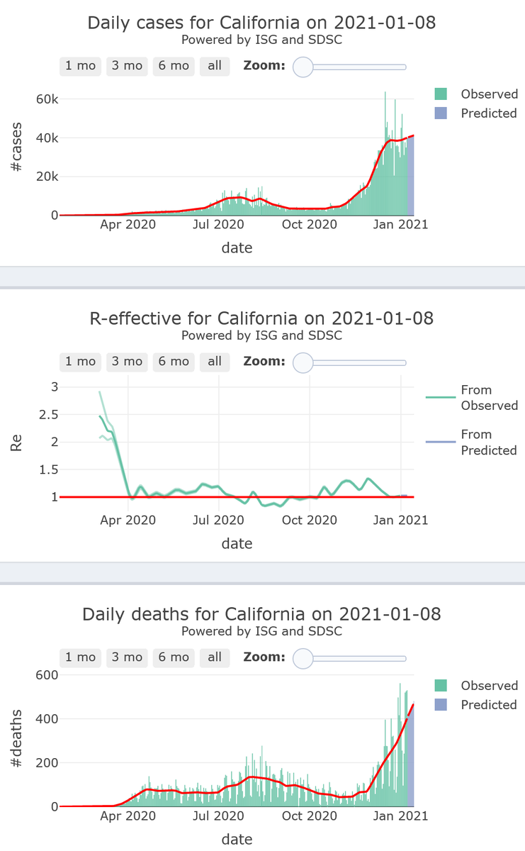9/10 - California will be plateauing at very high levels of its #COVID19 epidemic activity (R-eff=1.02) at high levels, with increasing alarming levels of mortality, for 7 more days.