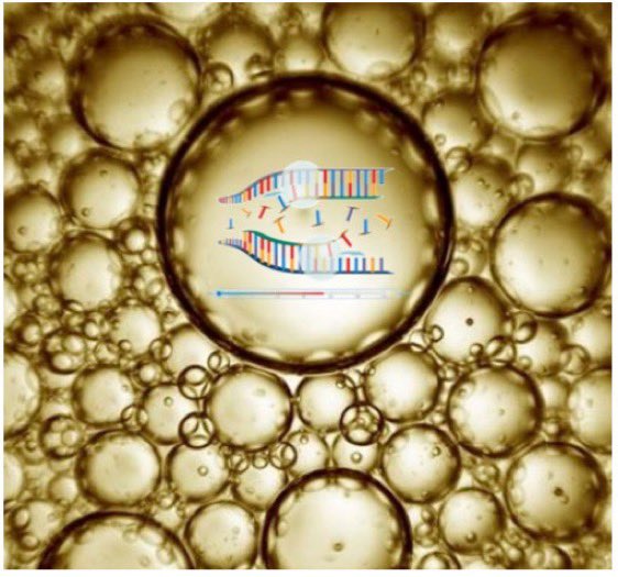 This enabled billions of individual 30um diameter PCR reactions to be performed in a single reaction vessel.