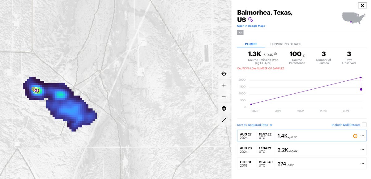 With this open portal, you can zoom in to specific sources to see the methane plume and select different dates on which the satellite and algorithms detected it. 3/3